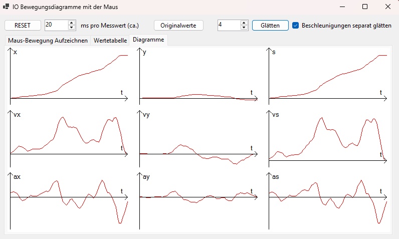 Mit diesem Programm kann man die Bewegung des Mauscursors (oder bei Touch-Displays auch des Fingers) in Bewegungsdiagrammen darstellen. Das dient vor allem dem Physikunterricht...