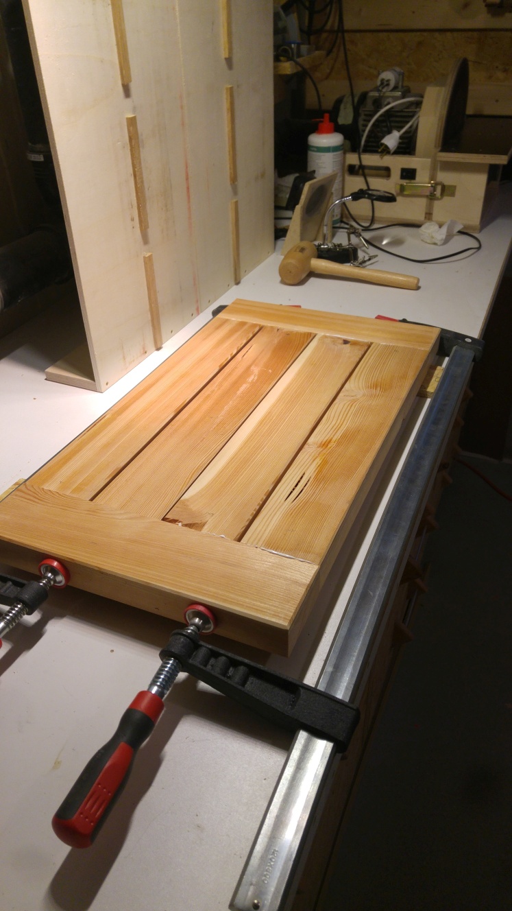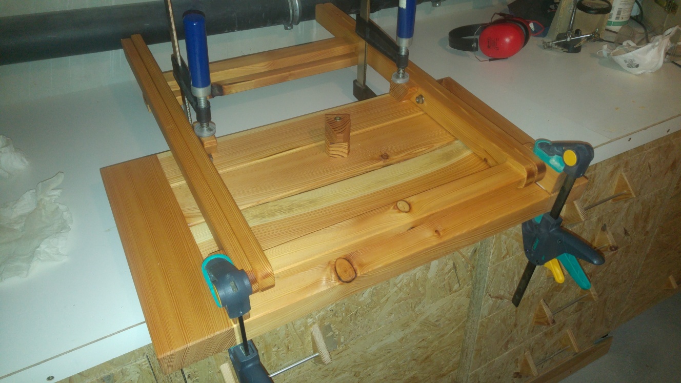Mit wasserfestem Leim wird die Tischplatte zusammengefügt