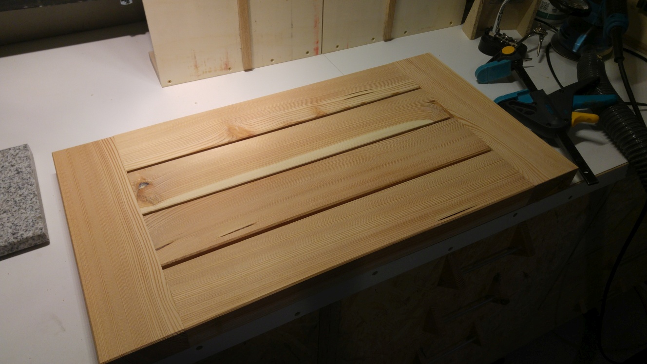 Übrige Balken (Lärchenholz) in passenden Längen abgesägt und mit dem Handhobel "abgerichtet" (nur sehr laienhaft)