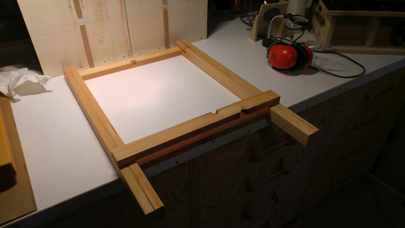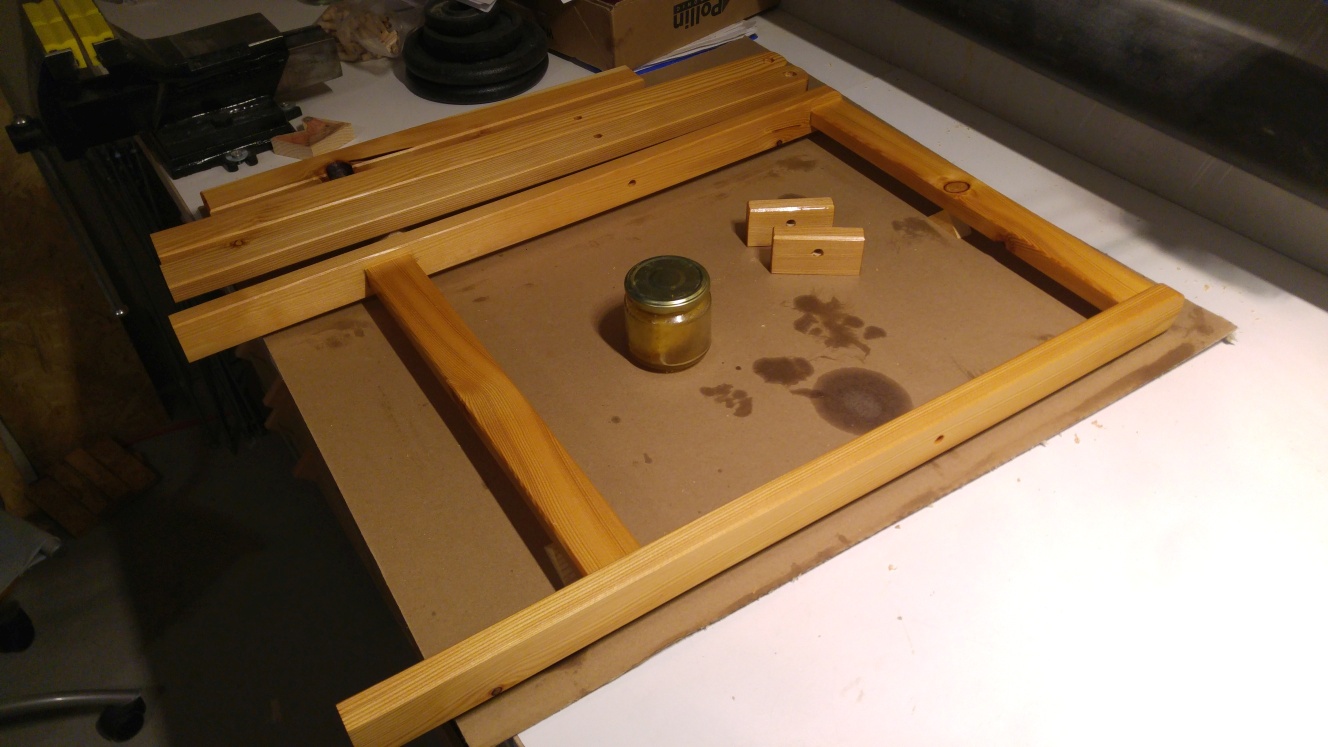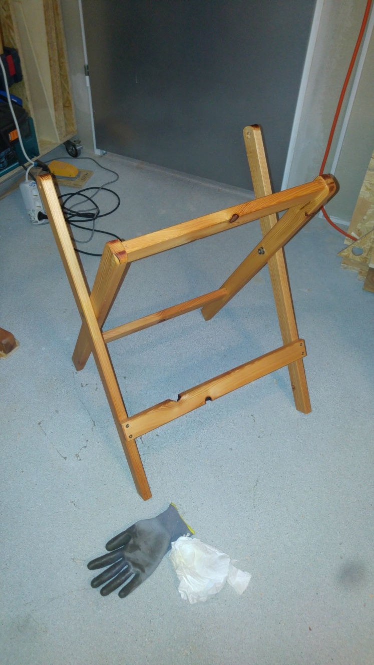 Das ganze Gestell wird auch wieder mit Leinölfirnis behandelt