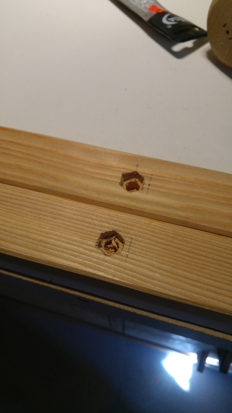 Hier sieht man, wie die Holzdübel zum Einsatz kommen