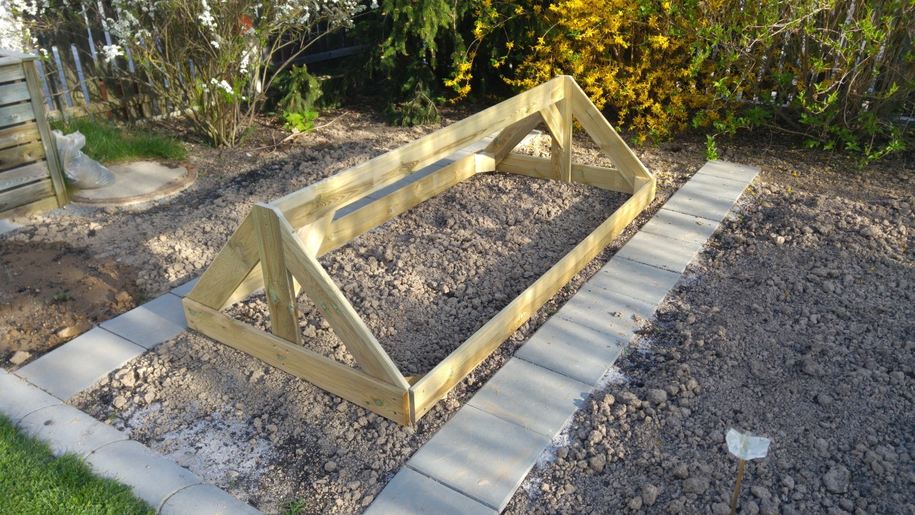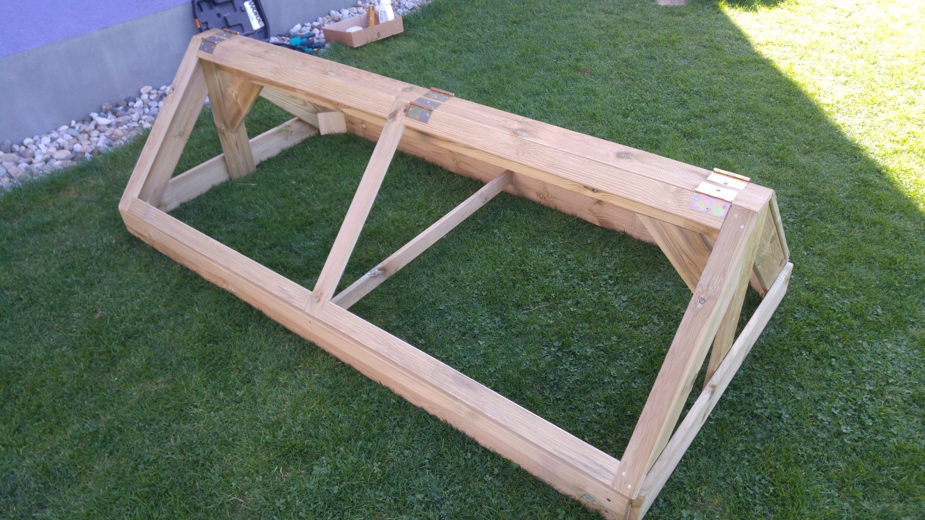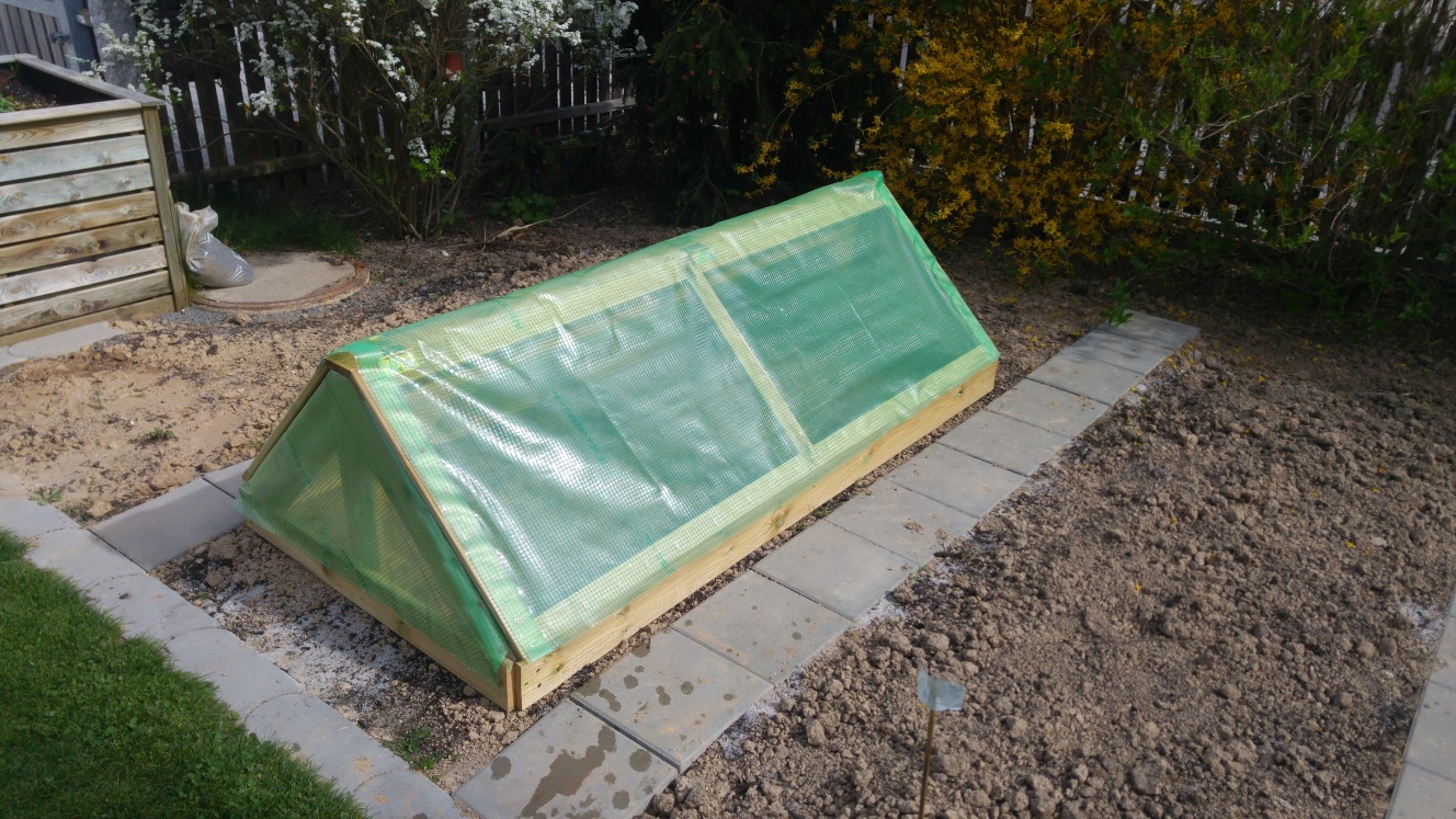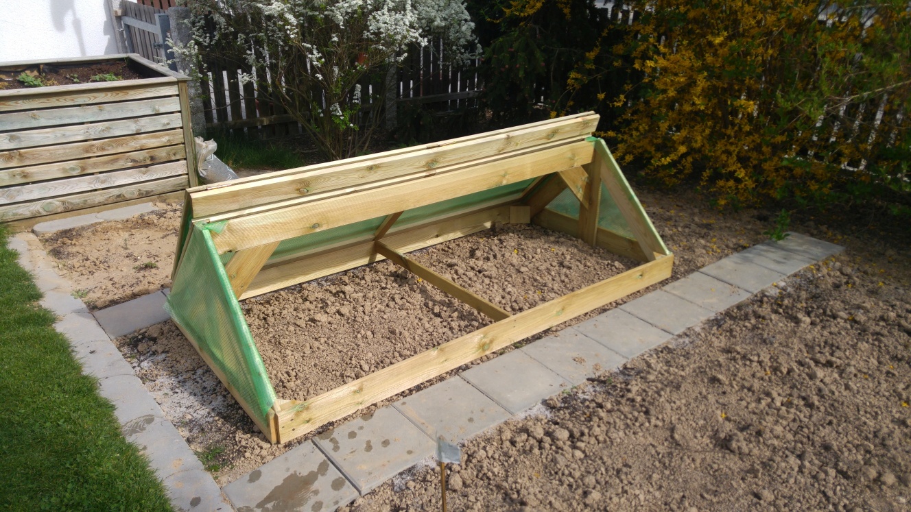 Das erste ist eine Abdeckung für Gemüsebeete. Darunter sind kleine Pflänzchen vor kalten Winden im Frühjahr geschützt und unter dem Foliendach wird es in der Sonne schön warm und bleibt feucht.