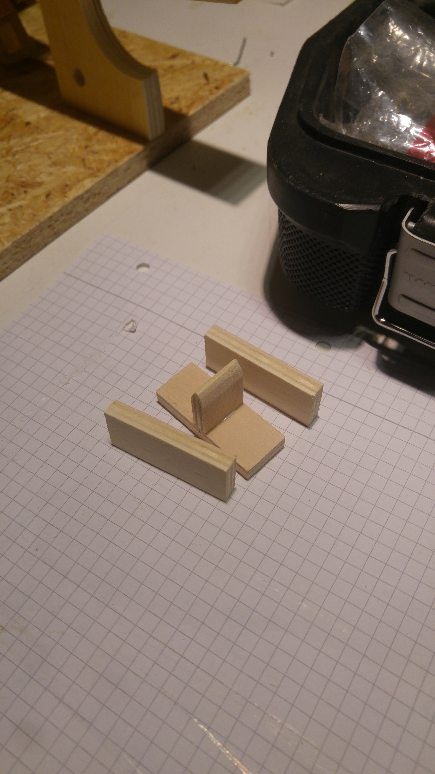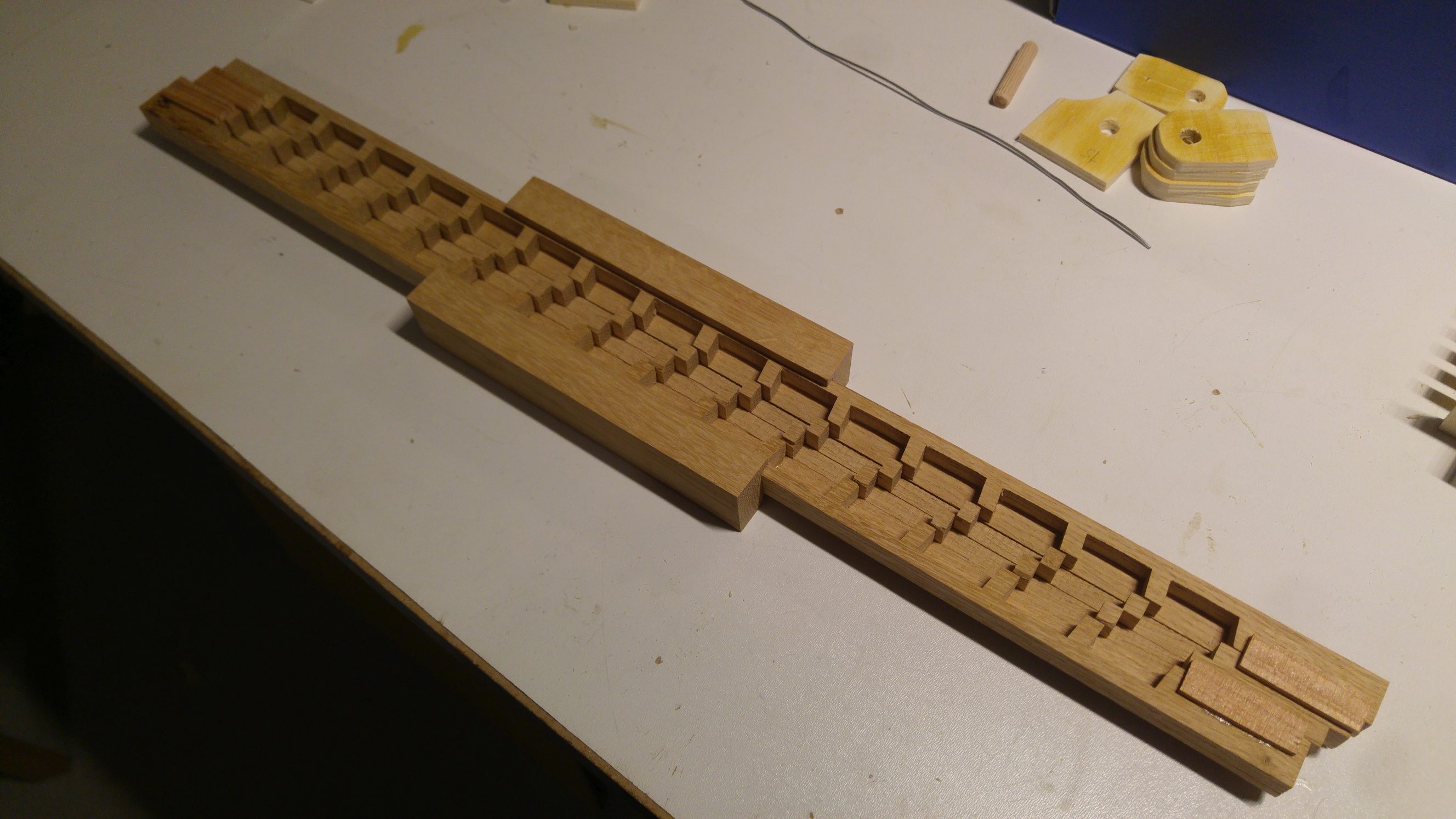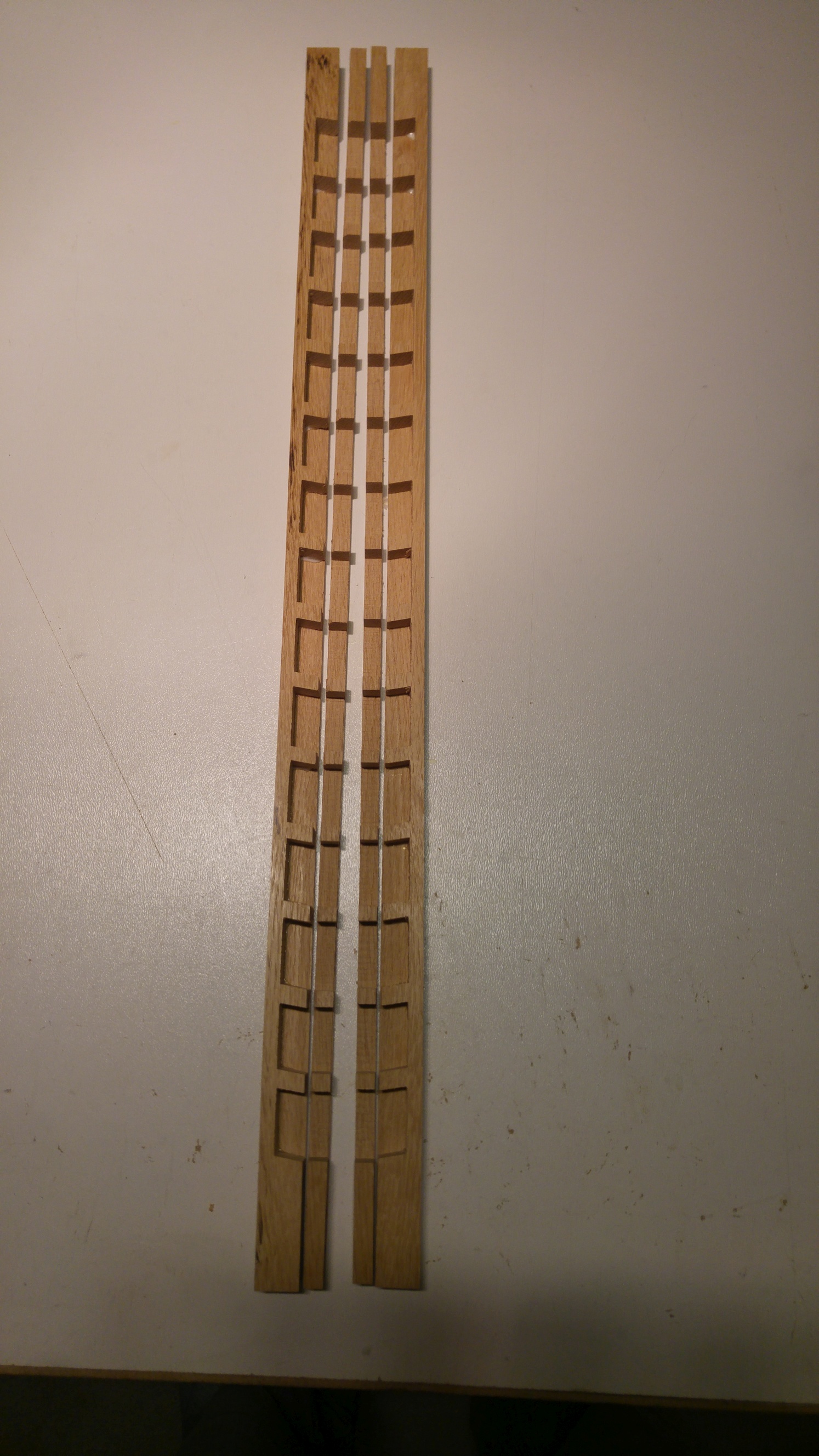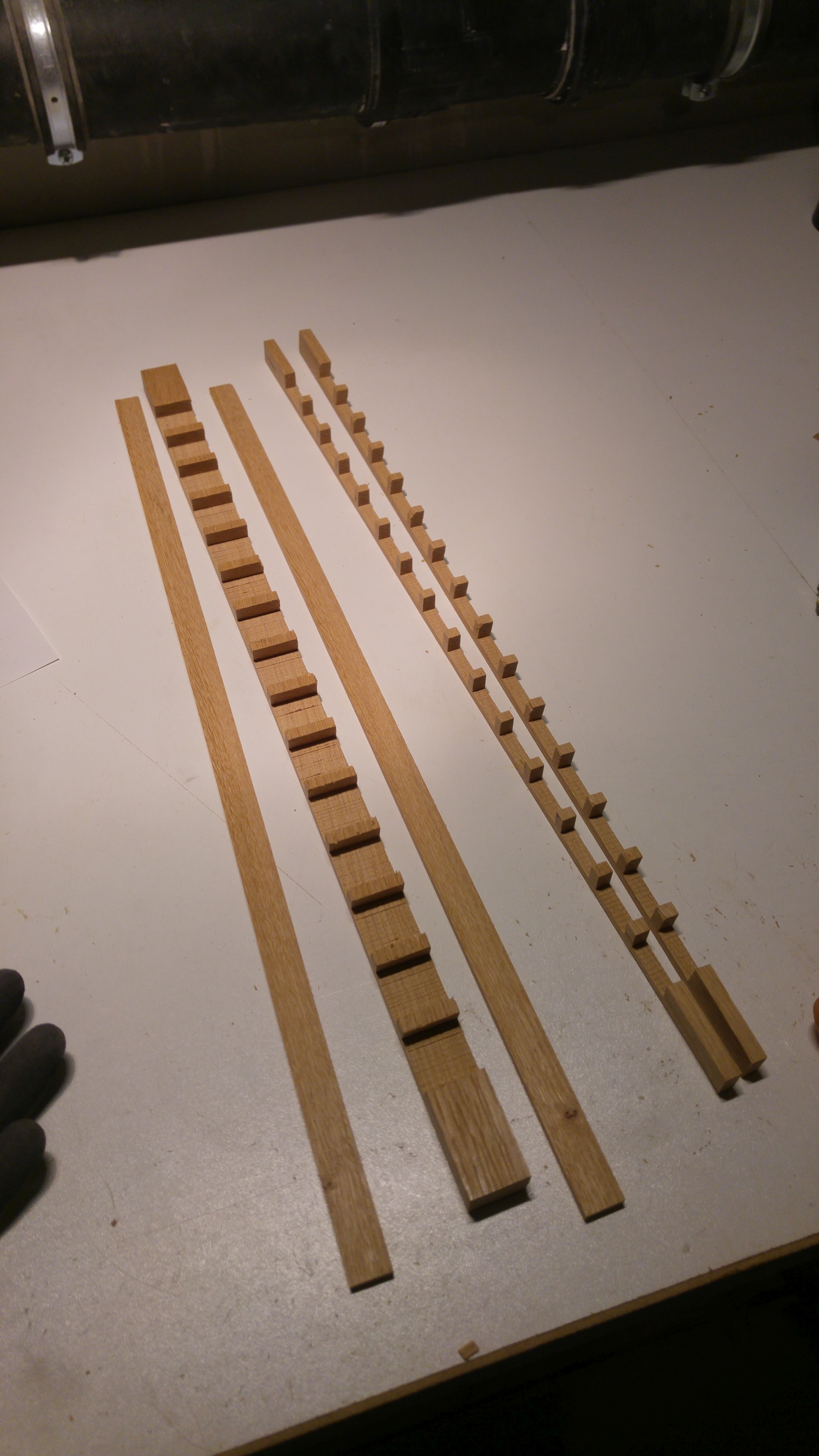 Aus dünnen Streifen Eichenholz sind die Teile für die Leiter entstanden