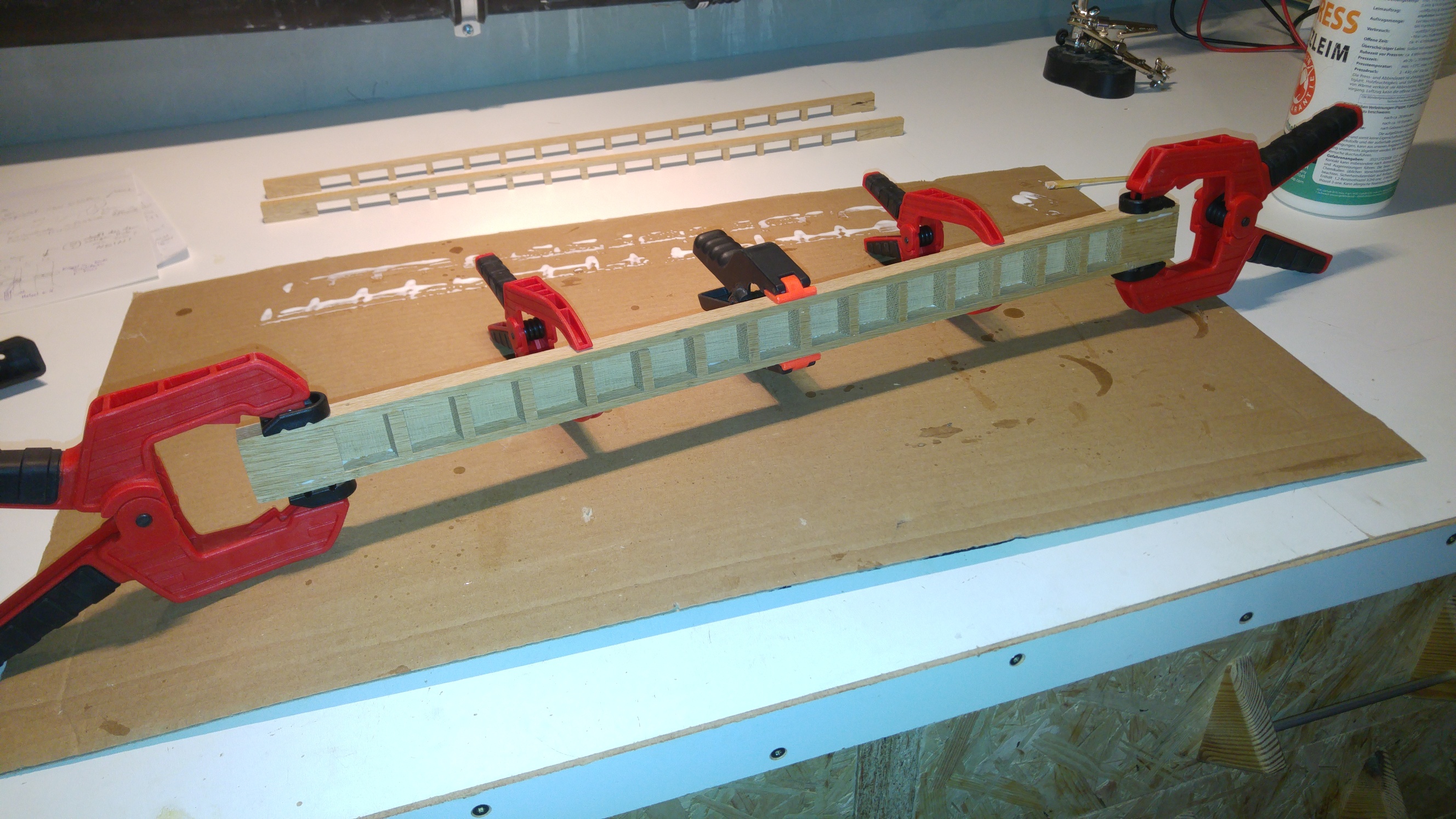 Die Wände für die äußeren beiden Teile der Leiter werden aufgeleimt