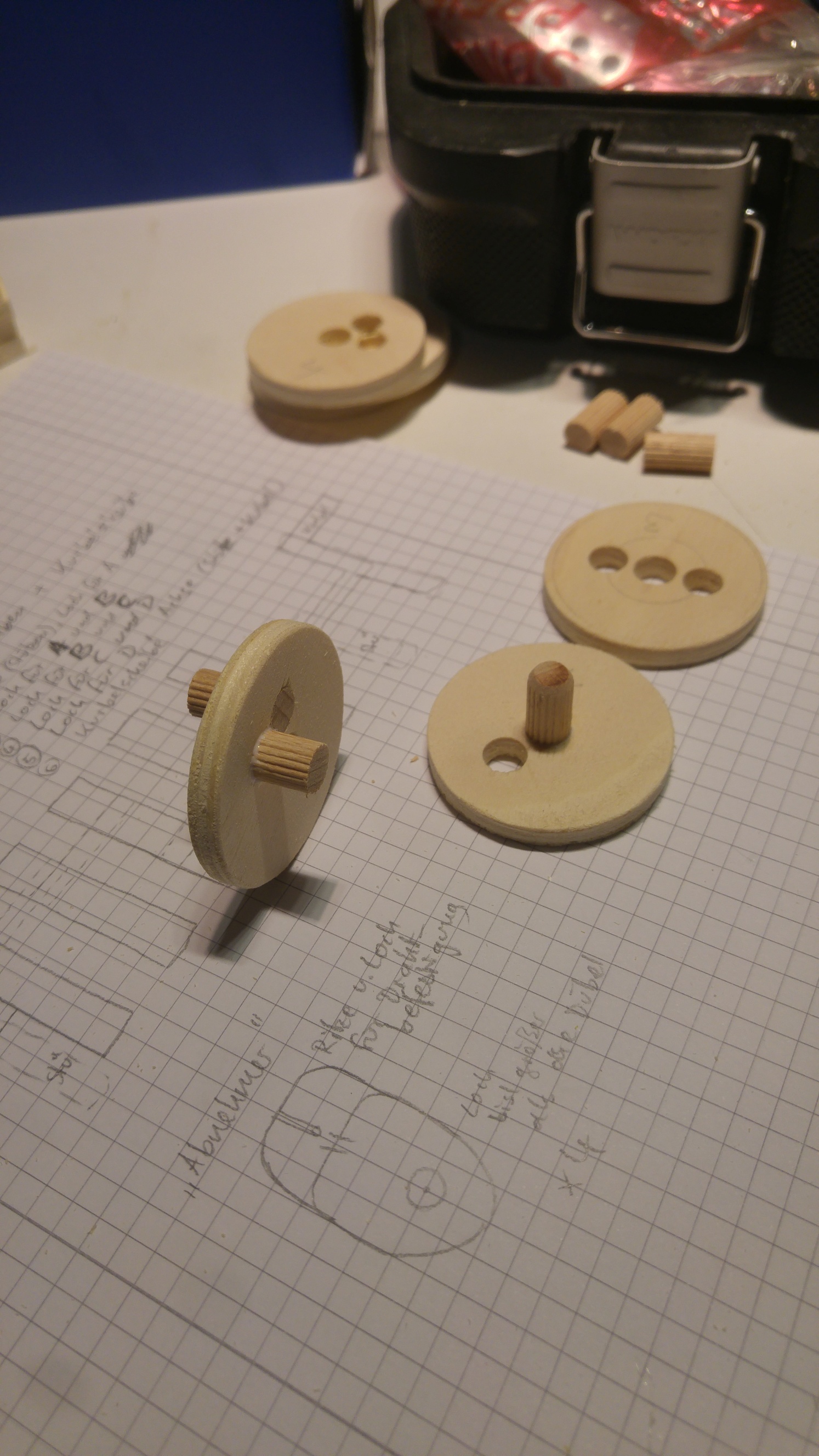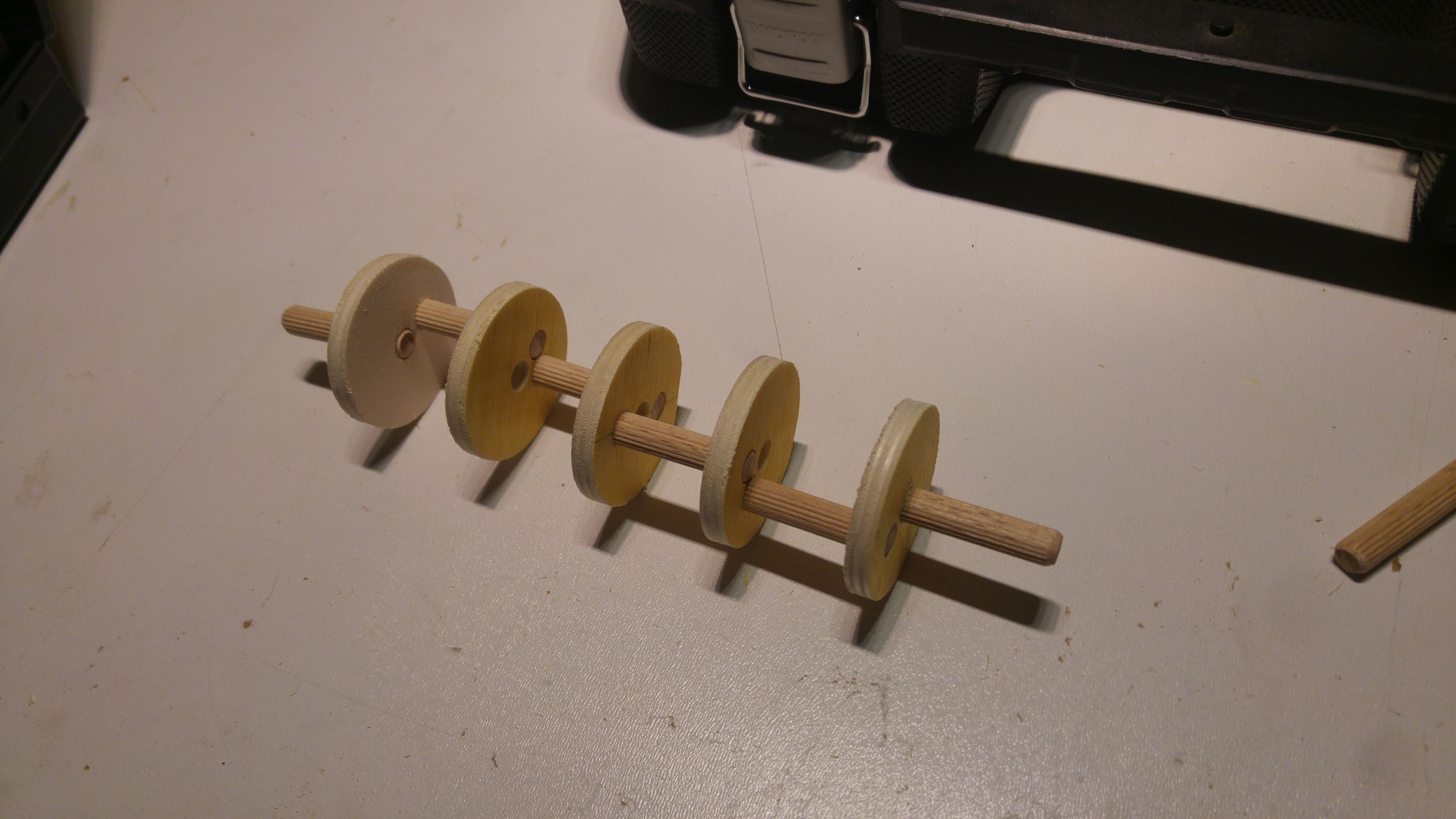 Die Antriebswelle soll aus diesen Scheiben entstehen, die ich mit einem Kreisschneider hergestellt habe