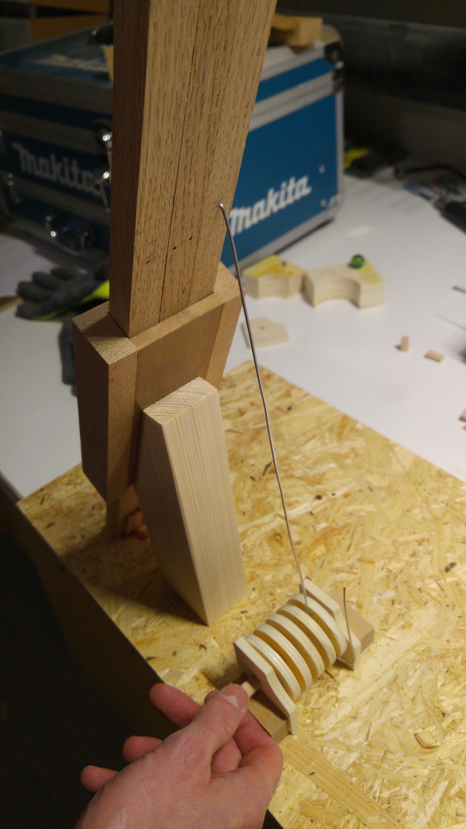 Erster Test, ob ein Draht von der Welle aus einen Streifen der Leiter heben und senken kann - es klappt