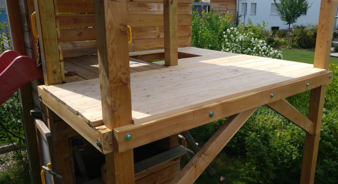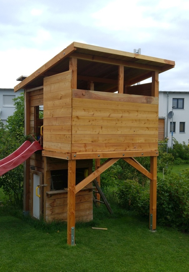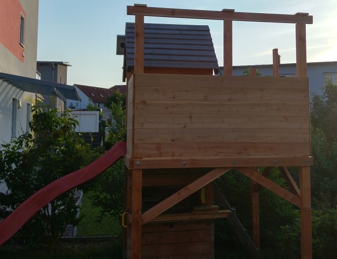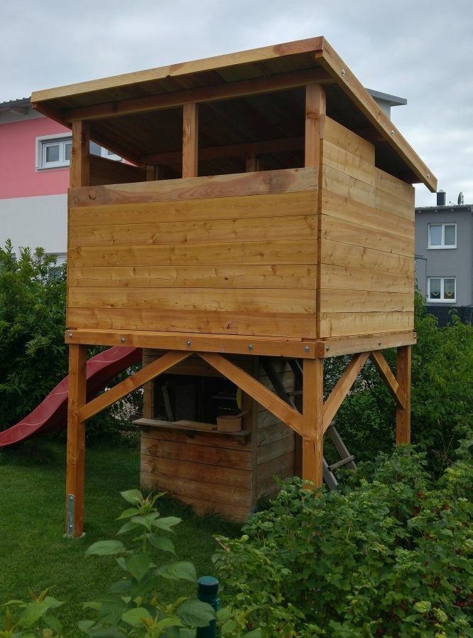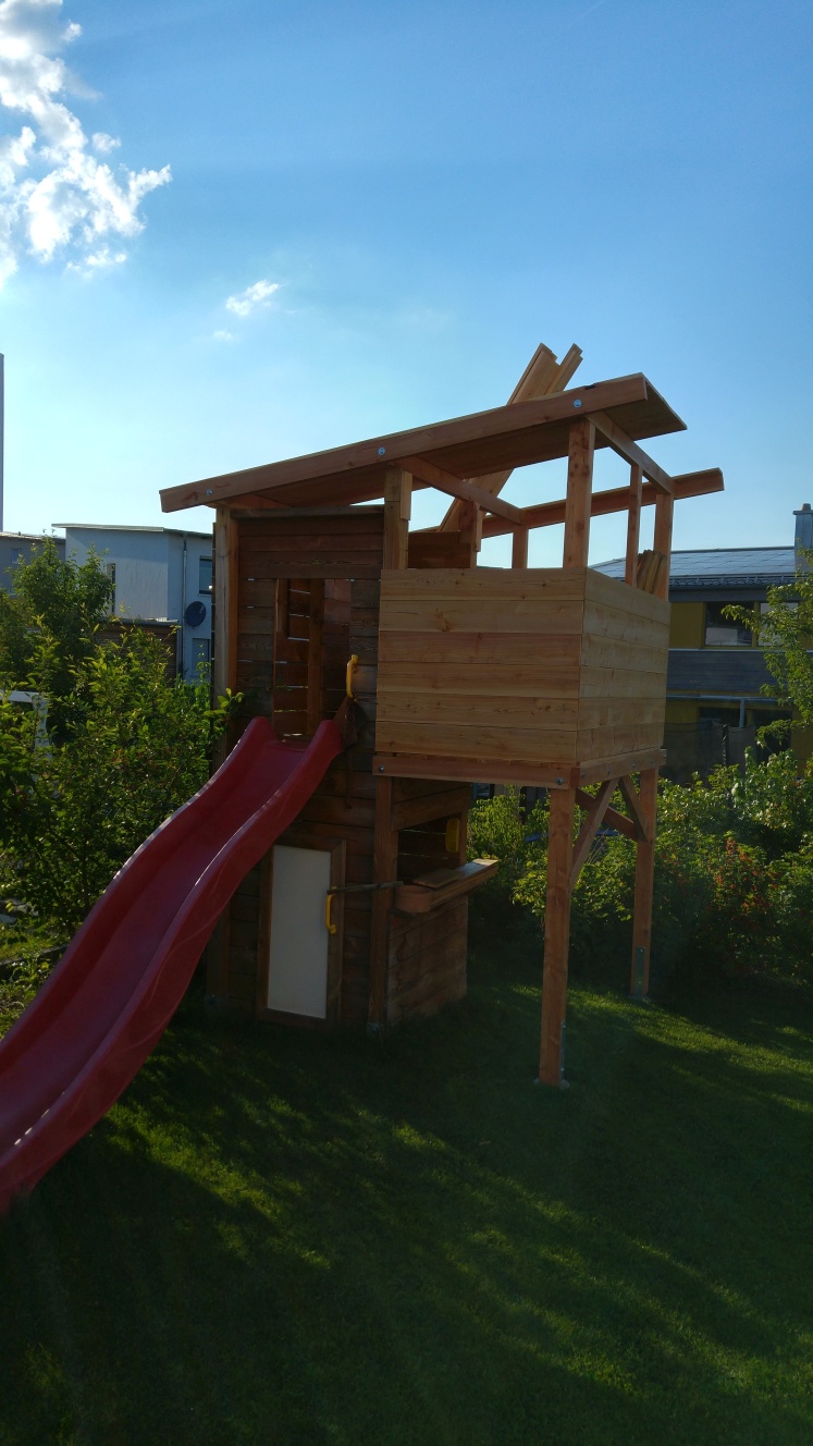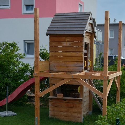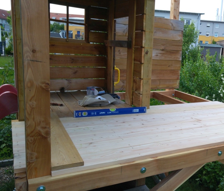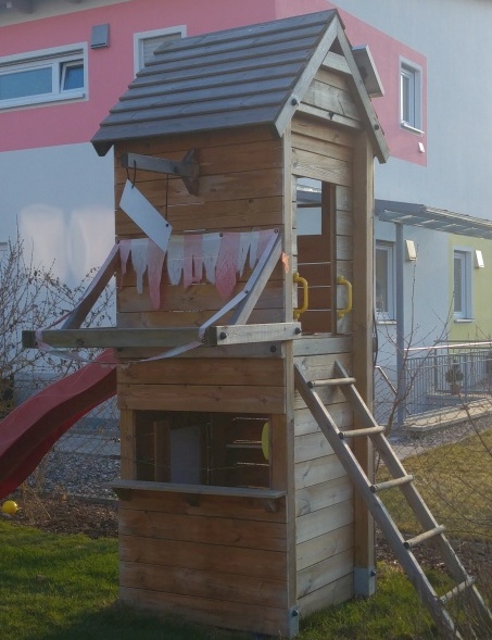 Im alten Spielhäuschen war zu wenig Platz zum sitzen.