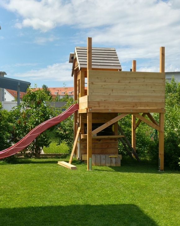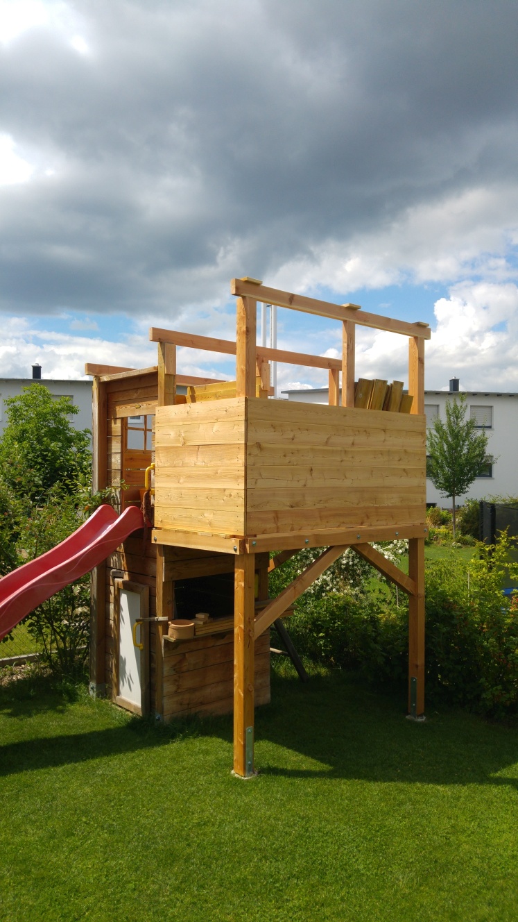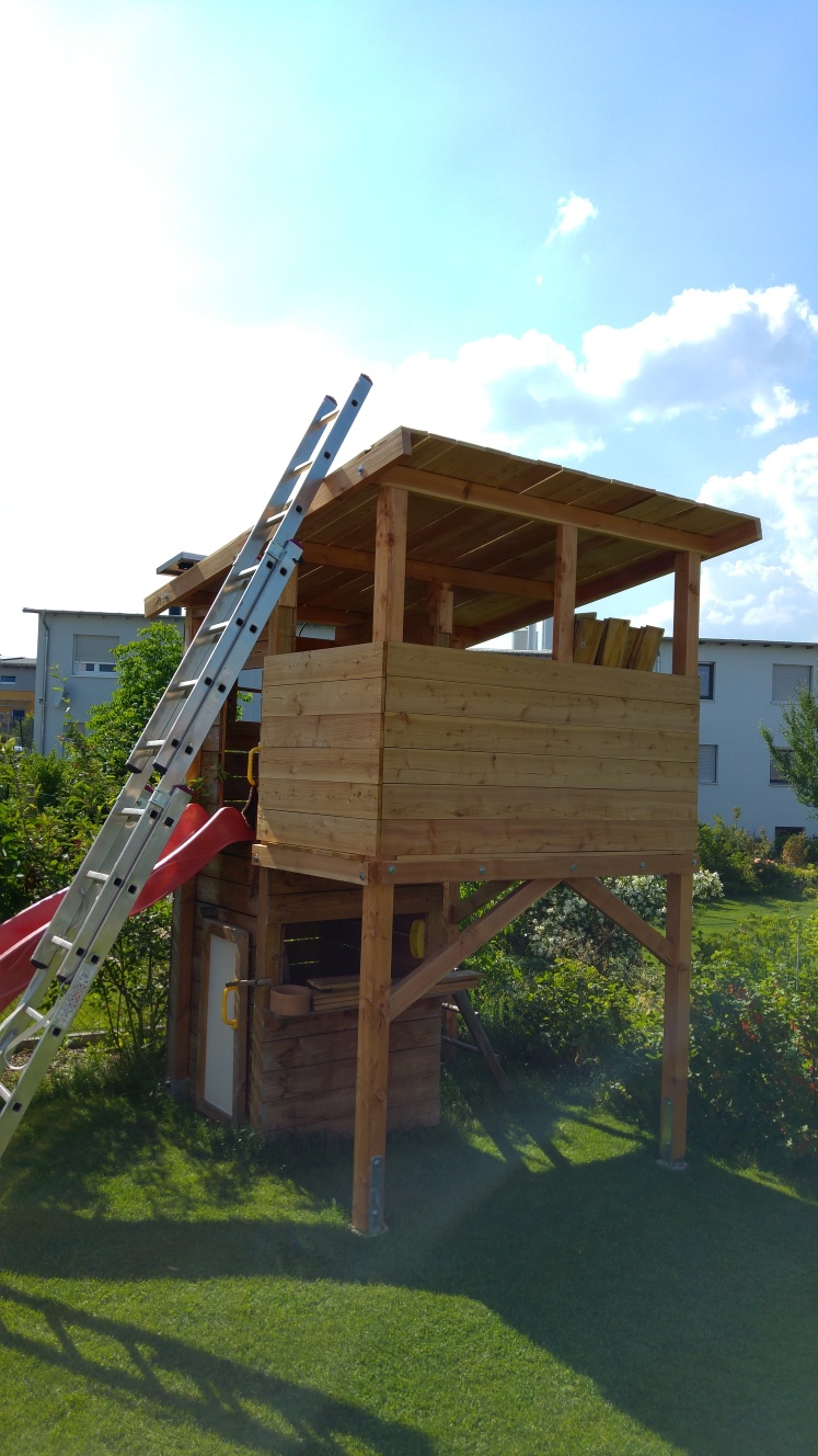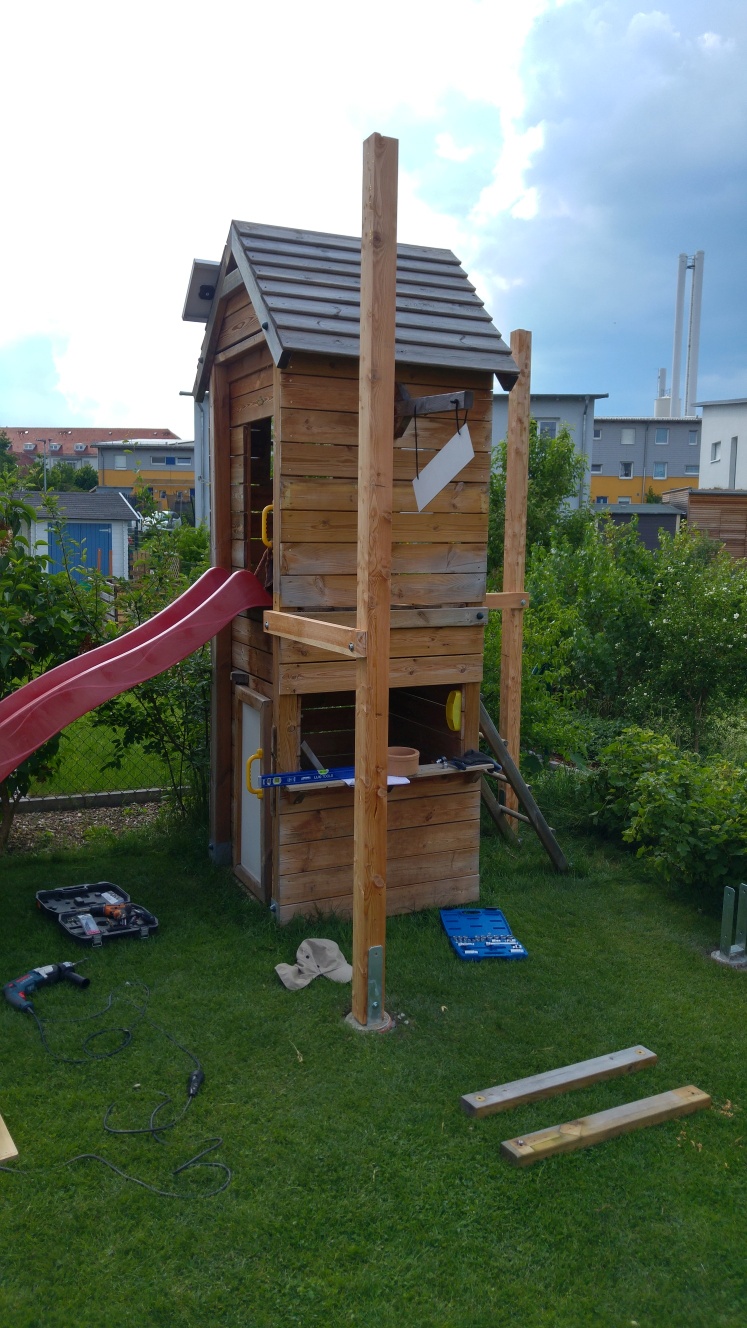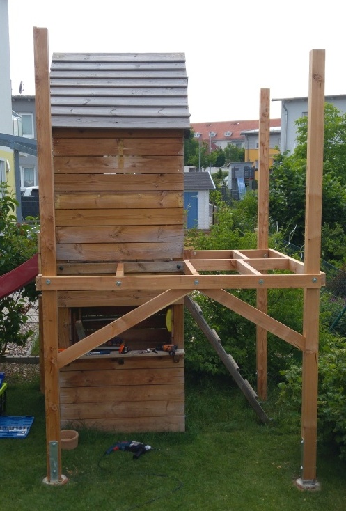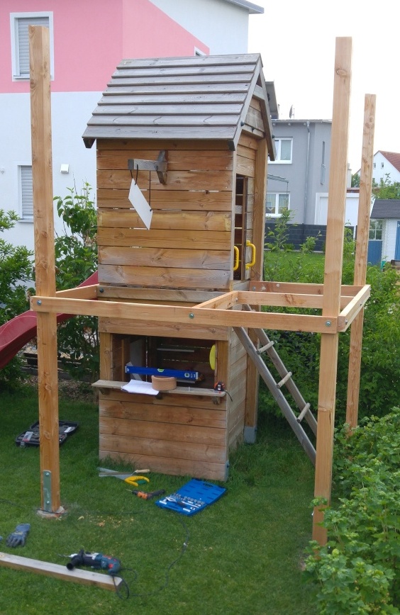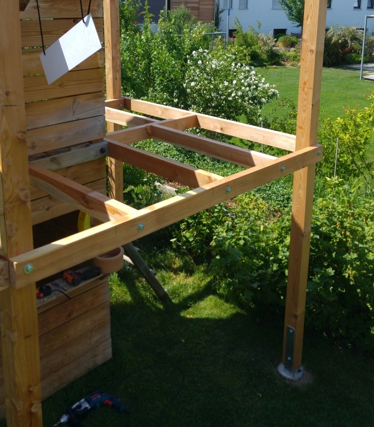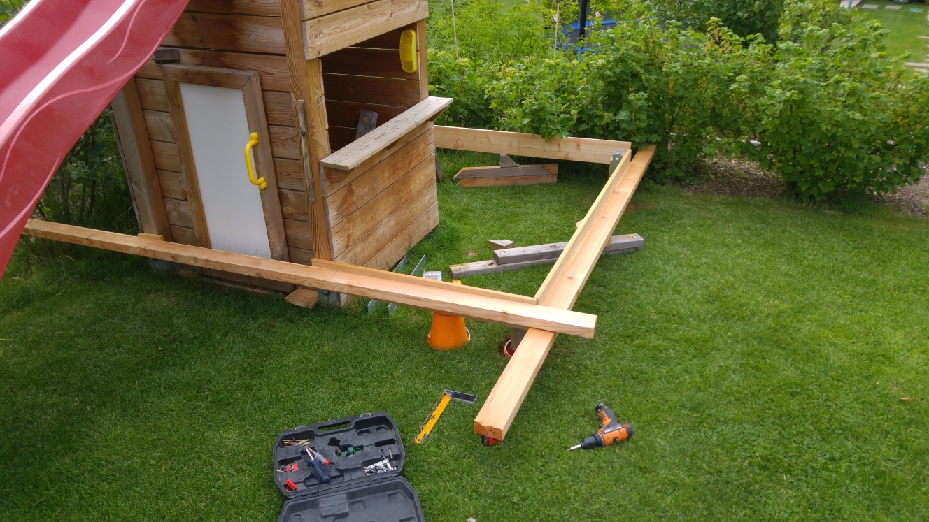 Das grobe Gerüst steht und zeigt, welche Maße das Häuschen später haben wird.