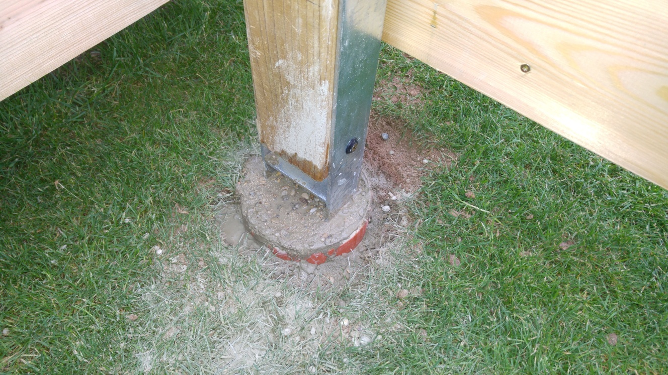 Die Fundamente mit einbetonierten Trägern sind fertig.