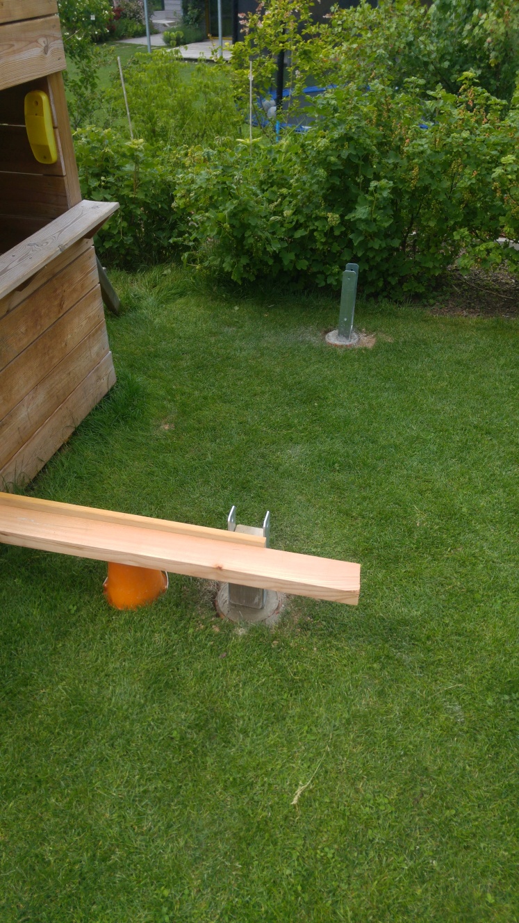 Die schräg verlaufenden Stützen sollen den 2m langen Querbalken entlasten...