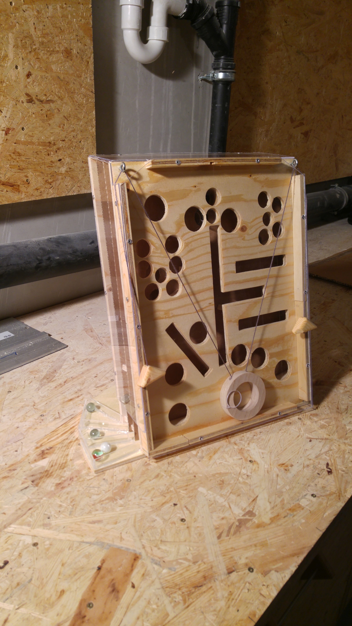 Ich habe in meiner Version manche Löcher zu "Punktelöchern" erklärt. Lässt man die Murmel in ein solches Loch fallen, kommt sie unten an einer anderen Stelle wieder heraus, als wenn man ein "Hindernisloch" trifft. So kann man nach ein paar Durchläufen seine Punkte zählen.