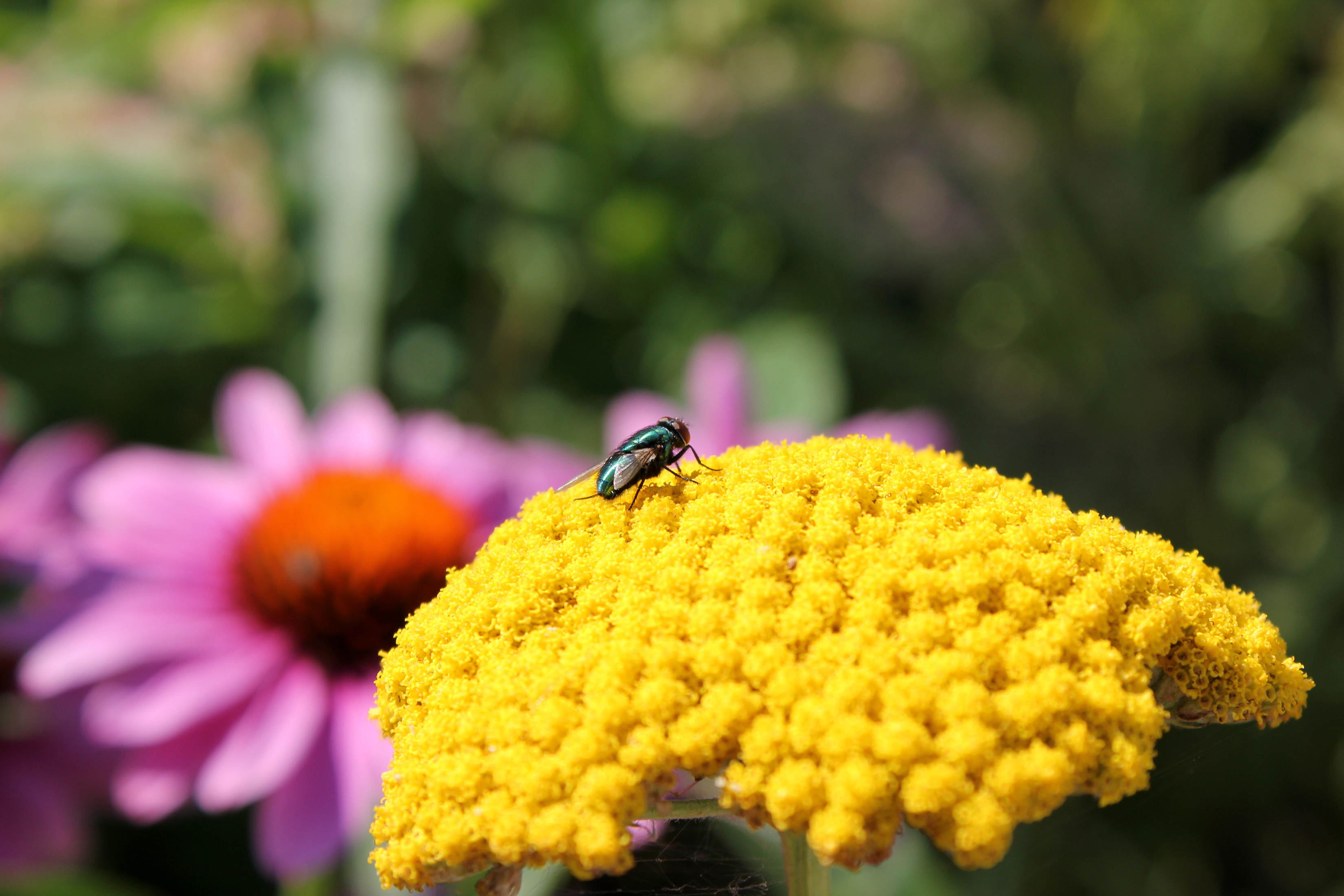 Eine Fliege saß ganz ruhig und bot einen sagenhaften Kontrast.